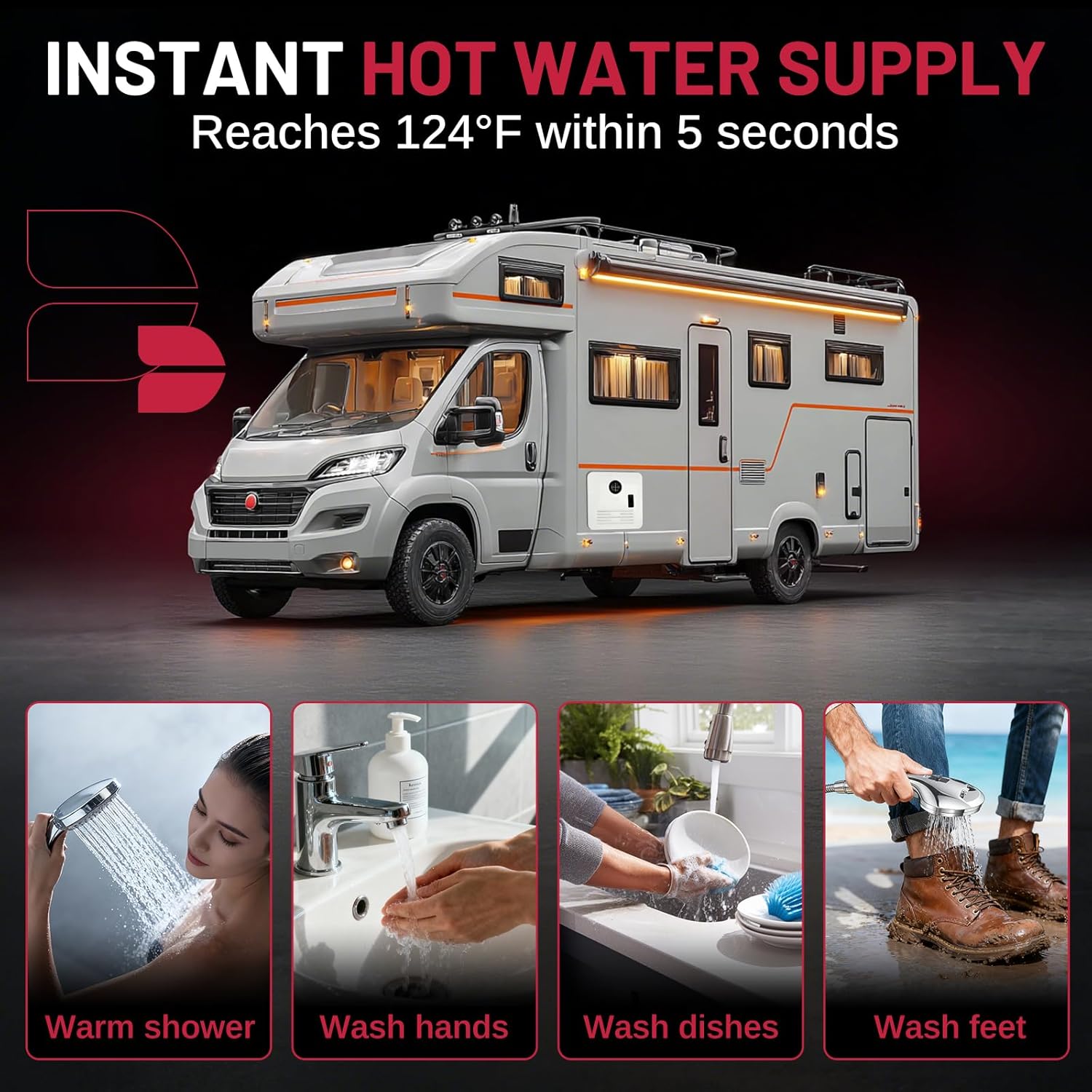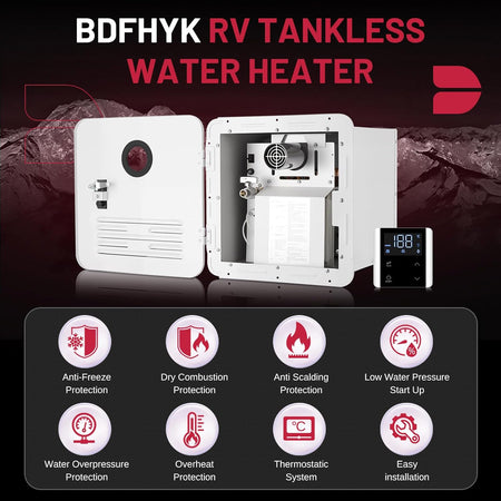 Instant Heating: Propane water heaters are better than storage water heaters! No need to wait 20-30 minutes, the propane heats up instantly with 65,000 BTU power. As long as there is enough water, the built-in microcomputer panel lets you adjust water temperature between 95°F and 124°F it can provide you with hot water at any time. No need to worry about power outages in the RV - the perfect companion for long trips