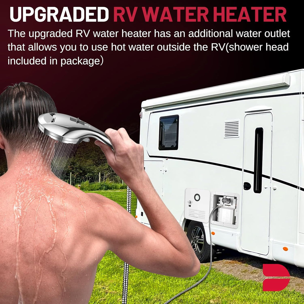 Dual Water Outlets: The RV tankless water heater is designed with dual water outlets inside and outside to meet daily RV needs and outdoor needs. An external shower hose connects to the outside of your RV to easily rinse muddy feet or bathe your pets, keeping your RV clean while enjoying nature