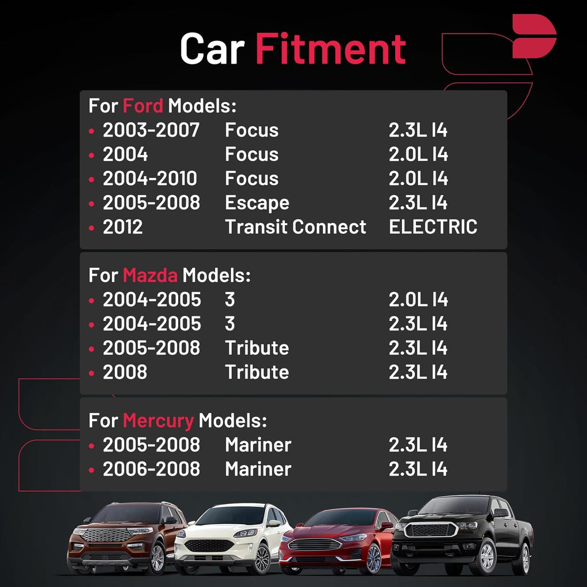【Precautions for Purchase】:Compatible with Transit Connect Focus Escape; Compatible with Mazda 3 Tribute; Compatible with Mercury Mariner.Please confirm the compatibility according to the year/make/model of your vehicle and the OE number of the replaceable part.