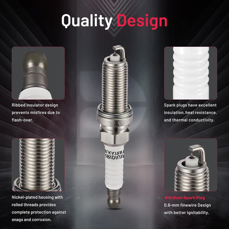 【Double Iridium Spark Plug Features】:The BDFHYK Iridium Spark Plug offers superior ignition performance and longer service life, with a very fine iridium tip that provides a stable idle and enables fast starting and acceleration.