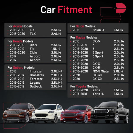 【Precautions for Purchase】:Compatible with Acura 2016-2020 TLX,2016-2019 ILX; Compatible with Honda 2016-2020 Civic,2016-2019 CR-V Fit,2017 Accord; Compatible with Mazda 2016-2020 3 Sport 6 CX-3 CX-5 MX-5 Miata,2020 CX-30; Compatible with Scion 2016 iA; Compatible with Subaru 2016-2019 Legacy Outback,2016-2018 Forester,2016-2017 Crosstrek,2016 Impreza; 2016-2020 iA.Please confirm the compatibility according to the year/make/model of your vehicle and the OE number of the replaceable part.