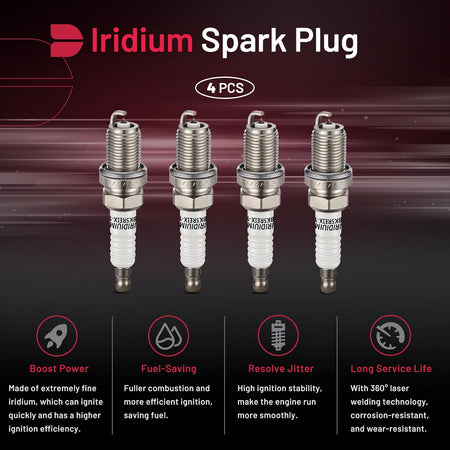 【Double Iridium Spark Plug Features】:BDFHYK Iridium Spark Plugs provide excellent ignition performance and longer life with very fine iridium tips for stable idling and fast starting and acceleration.