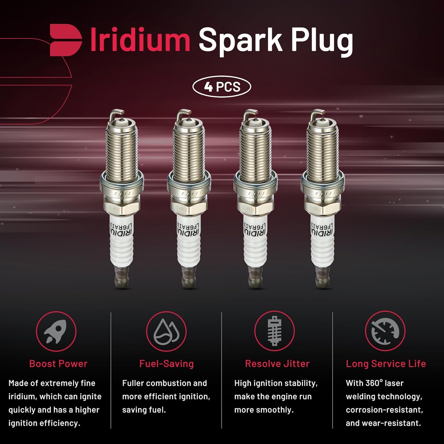 【Relive Performance】:OE standard performance and durability TS16949 certified manufacturer. All center electrodes are made from extremely fine iridium electrodes for good ignition performance. Insulators are made from isostatic ceramics for high density, strength, and good insulation.