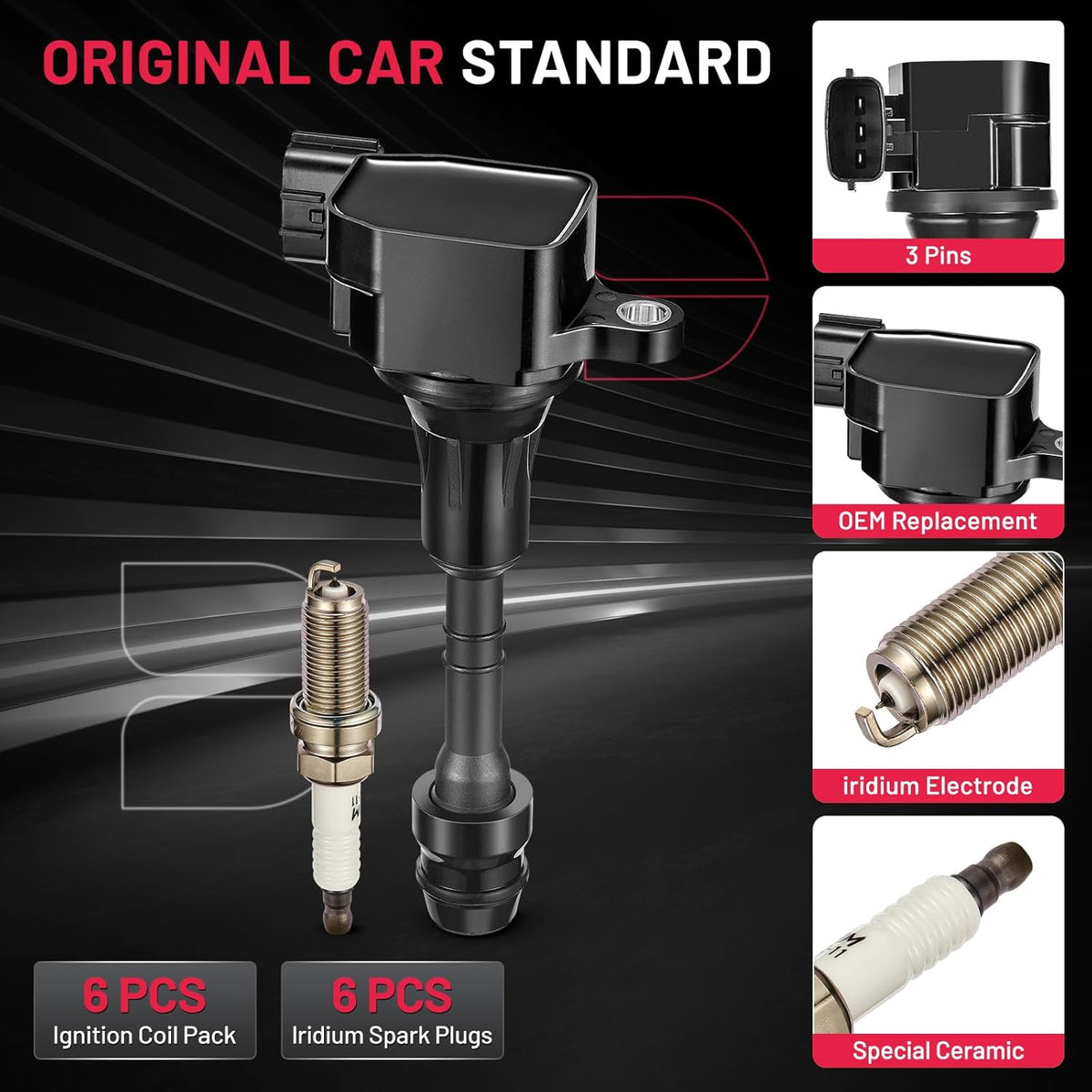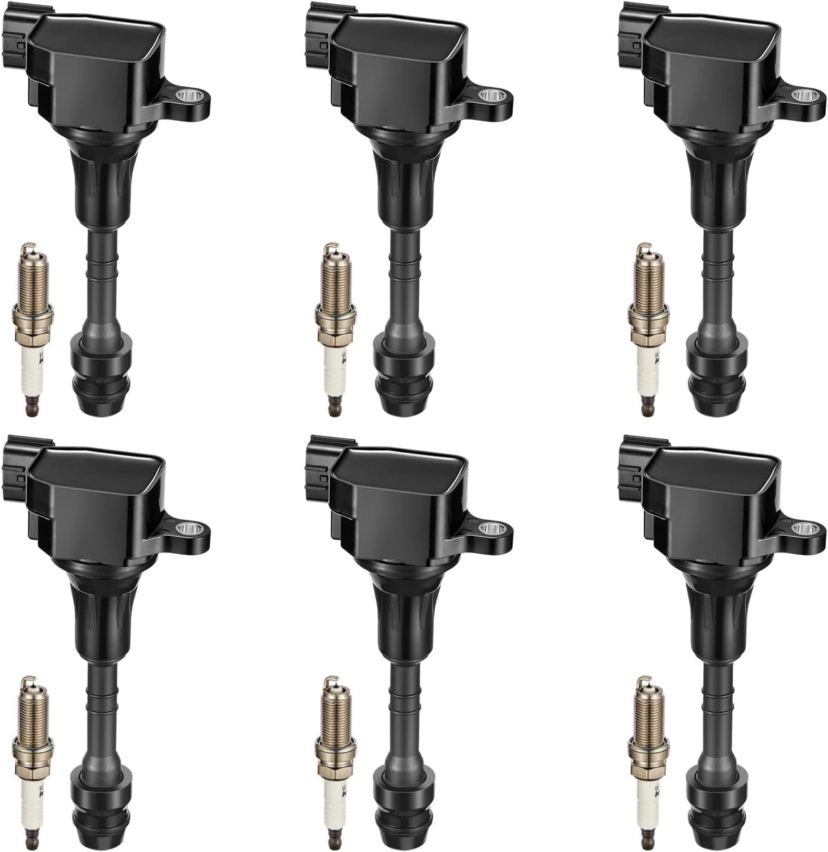 BDFHYK Set of 6 Ignition Coils pack UF401 & Iridium Spark Plugs NGK4469 Compatible with INFINITI FX35 G35 I35 M35 QX4 Nissan 350Z Altima Frontier 350Z 3.5L 4.0L V6 Replacement for C1439 22448-AL615