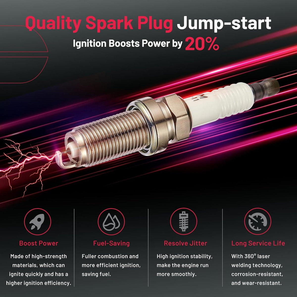 【Features of spark plug:】Professional spark plus is made of high-tech materials. We choose iridium electrode and unique ceramic to make sure your car can have a new life after being installed. The car will start quickly and speed up in a short time as powerful as a new car. Please check OE:NGK4469,LFR5AIX-11,22448-AL615,22448-AL61C,UF-401 22448AL61C.