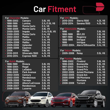 【Precautions for Purchase】:Compatible with Buick Allure Century LaCrosse LeSabre Lucerne Park Avenue Regal Riviera Terraza; Compatible with Chevy Camaro Equinox Express 1500 Impala Lumina Malibu Monte Carlo Silverado 1500; Compatible with GMC Savana 1500 Sierra 1500; Compatible with Oldsmobile 88 98 Alero Intrigue Regency Silhouette; Compatible with Pontiac Aztek Bonneville Firebird G6 Grand Am Grand Prix Montana Torrent; Compatible with Saturn Relay.