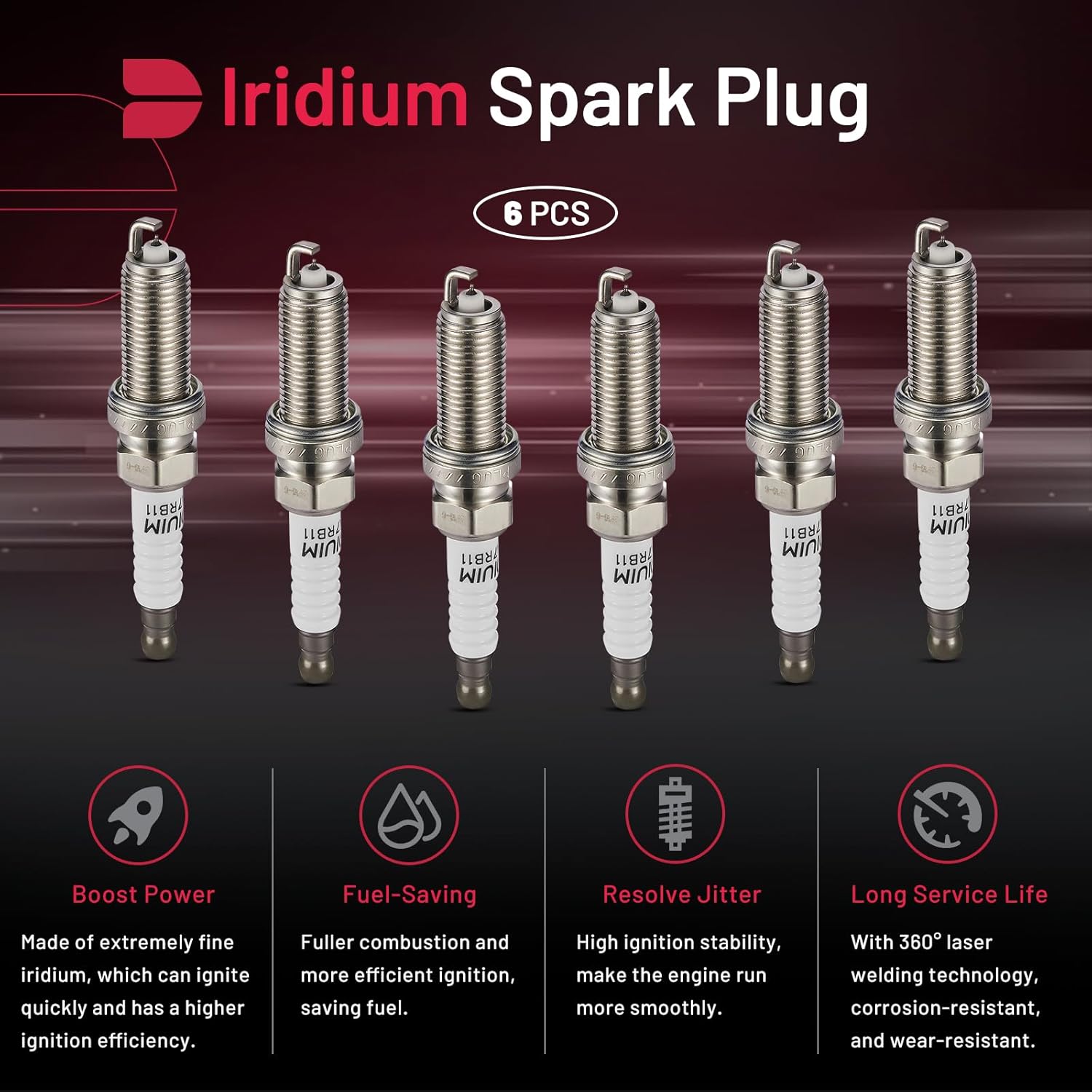 BDFHYK Set of 6 Iridium Spark Plug Compatible with INFINITI QX60 Q50 Q70 M35h JX35 EX35 FX35 G25 G35, Compatible with Nissan Maxima Murano Pathfinder Altima Quest 350Z,Replacement for 1406 DILKAR7B11