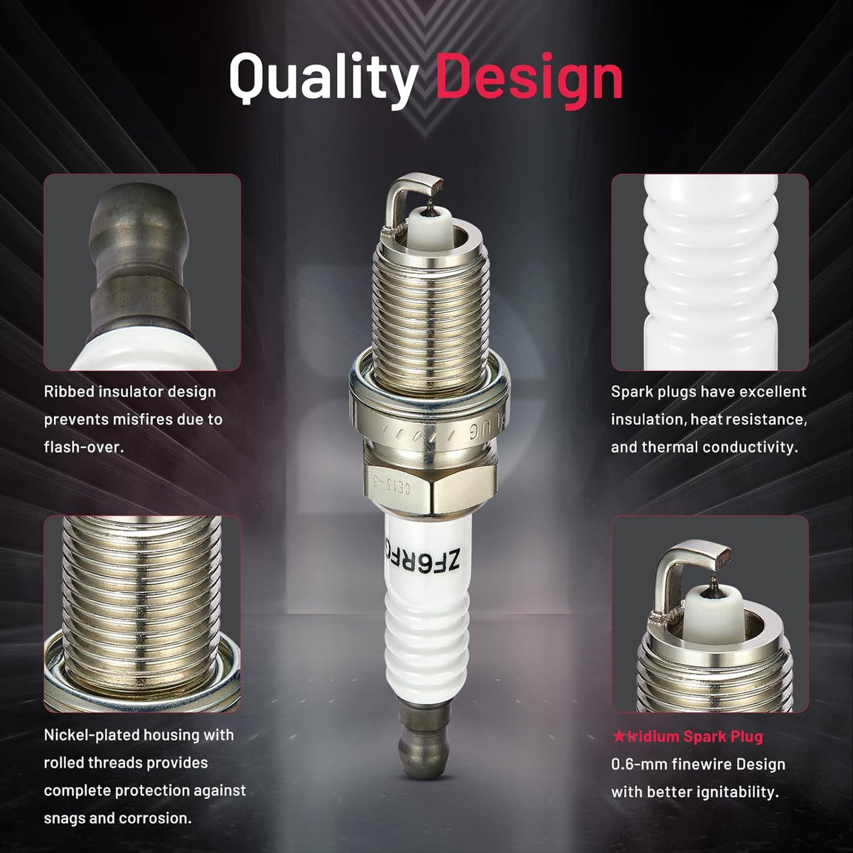 【Relive Performance】:OE standard performance and durability TS16949 certified manufacturer. All center electrodes are made from extremely fine iridium electrodes for good ignition performance. Insulators are made from isostatic ceramics for high density, strength, and good insulation.