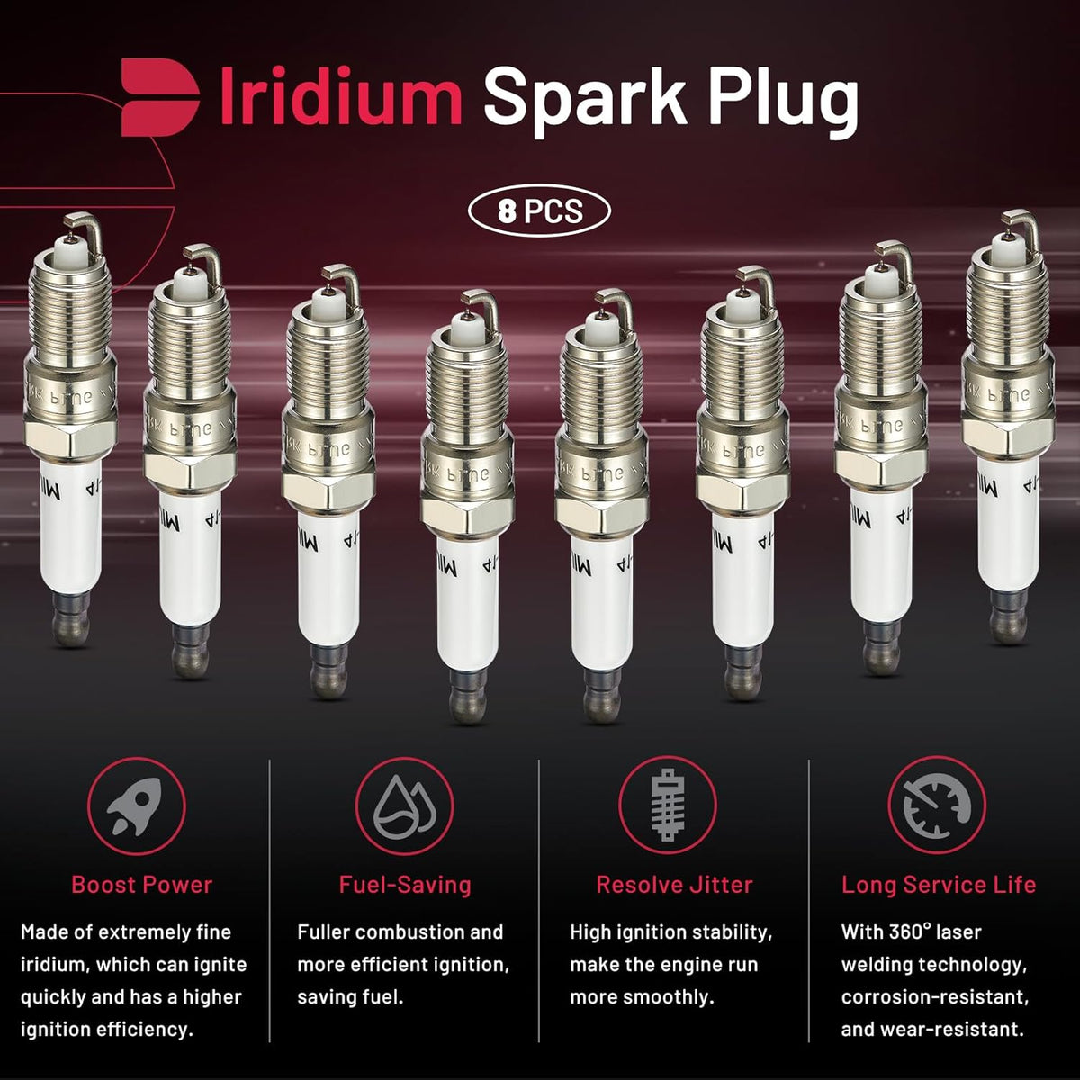BDFHYK Set of 8 Iridium Spark Plug Compatible with Buick Allure,Compatible with Cadillac ESV CTS, Tahoe, Yukon, H2, Firebird 4.8L 5.3L 5.7L 6.0L 6.2L 6.6L 7.0L 8.1L V8 Replacement for 41-110