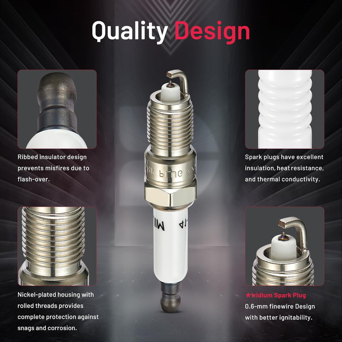 【Relive Performance】:OE standard performance and durability TS16949 certified manufacturer. All center electrodes are made from extremely fine iridium electrodes for good ignition performance. Insulators are made from isostatic ceramics for high density, strength, and good insulation.