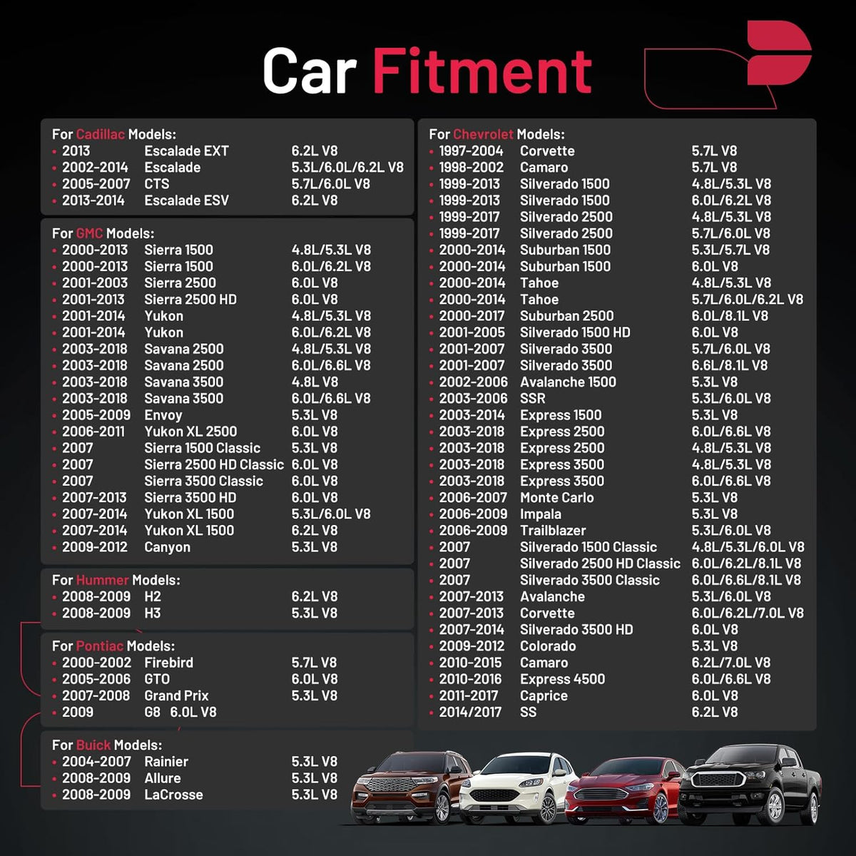 【Precautions for Purchase】:Compatible with Buick Allure LaCrosse Rainier; Compatible with Cadillac CTS Escalade ESV EXT; Compatible with Chevy Avalanche 1500 Camaro Caprice Colorado Corvette Express 1500 2500 3500 4500 Impala Monte Carlo Silverado 1500 2500 3500 HD Classic SS Suburban 1500 2500 Tahoe; Compatible with GMC Canyon Envoy Savana Sierra Yukon Yukon XL 1500 2500; Compatible with Hummer H2 H3; Compatible with Pontiac Firebird G8 Grand Prix GTO.
