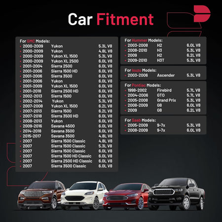 【Precautions for Purchase】:Compatible with GMC; Compatible with Hummer; Compatible with Pontiac; Compatible with Saab; Compatible with Isuzu.Please confirm the compatibility according to the year/make/model of your vehicle and the OE number of the replaceable part.