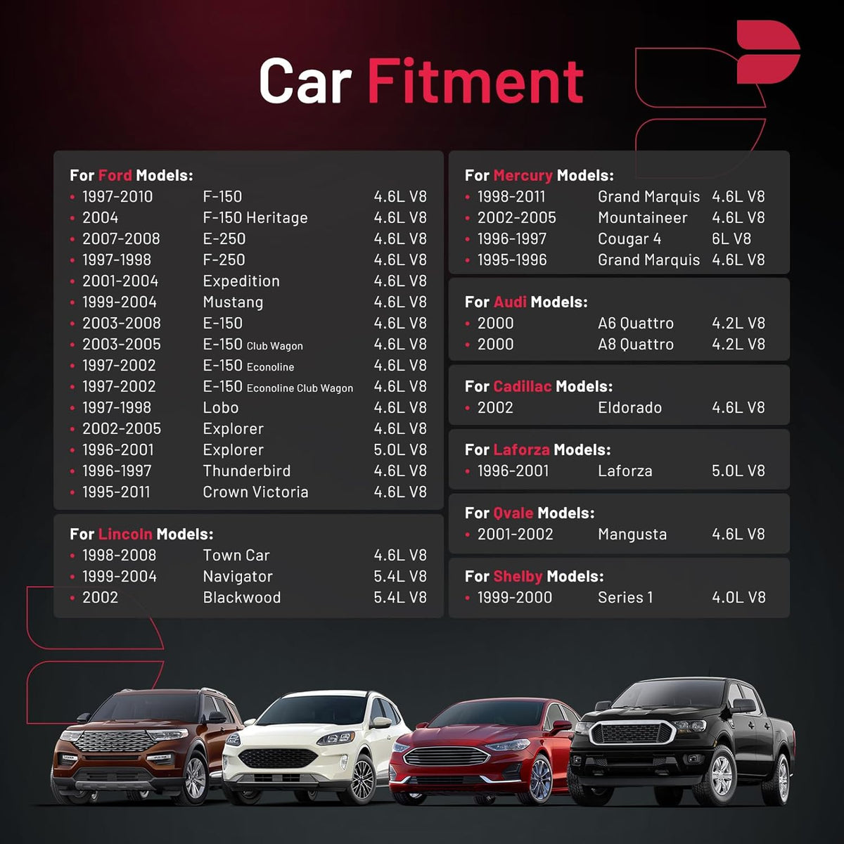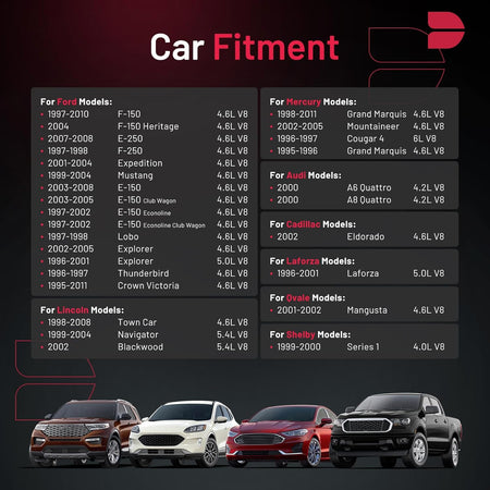 【Compatibility Information】:Spark Plug SP413 compatible with Lincoln Blackwood Navigator Town Car, compatible with Mercury Cougar Grand Marquis Mountaineer,compatible with Crown Victoria E-150 E-250 Expedition Explorer F-150 F-250 Lobo Mustang Thunderbird, compatible with Audi A6 Quattro A8 Quattro, compatible with Cadillac Eldorado, compatible with Laforza, compatible with Qvale Mangusta, compatible with Shelby Series 1.Please see images or details page for complete Compatibility information