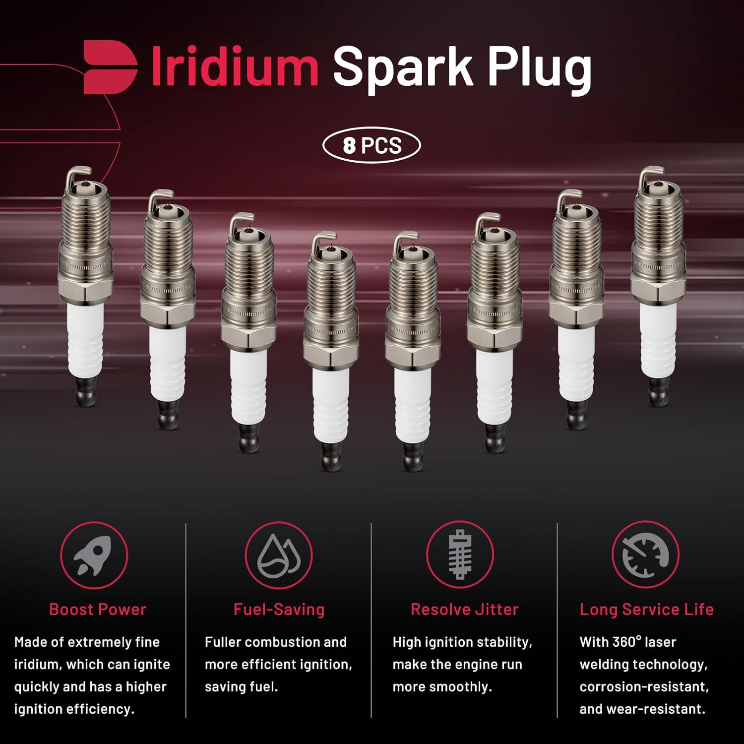 BDFHYK SP413 Iridium Spark Plugs Compatible with Lincoln Navigator for Mercury Mountaineer for Audi A6 A8 Quattro E-150 Explorer 4.0L 4.2L 4.6L 5.0L 5.4L V8 Engine Replacement for AGSF32N, Set of 8