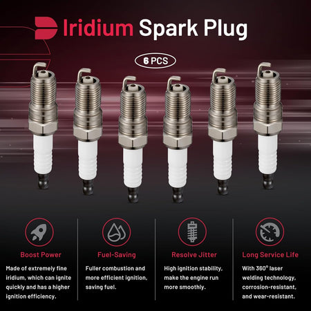 BDFHYK SP413 Iridium Spark Plugs Compatible with Ranger Tempo Probe for Mazda 6 Tribute MPV B3000 Benz 300CE 300SEL 300TE for Mercury Montego Sable 3.0L L6 V6 Engine Replacement for BP5EFS, Set of 6