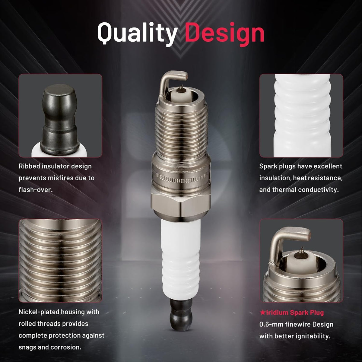 【Relive Performance】:OE standard performance and durability TS16949 certified manufacturer. All center electrodes are made from extremely fine iridium electrodes for good ignition performance. Insulators are made from isostatic ceramics for high density, strength, and good insulation
