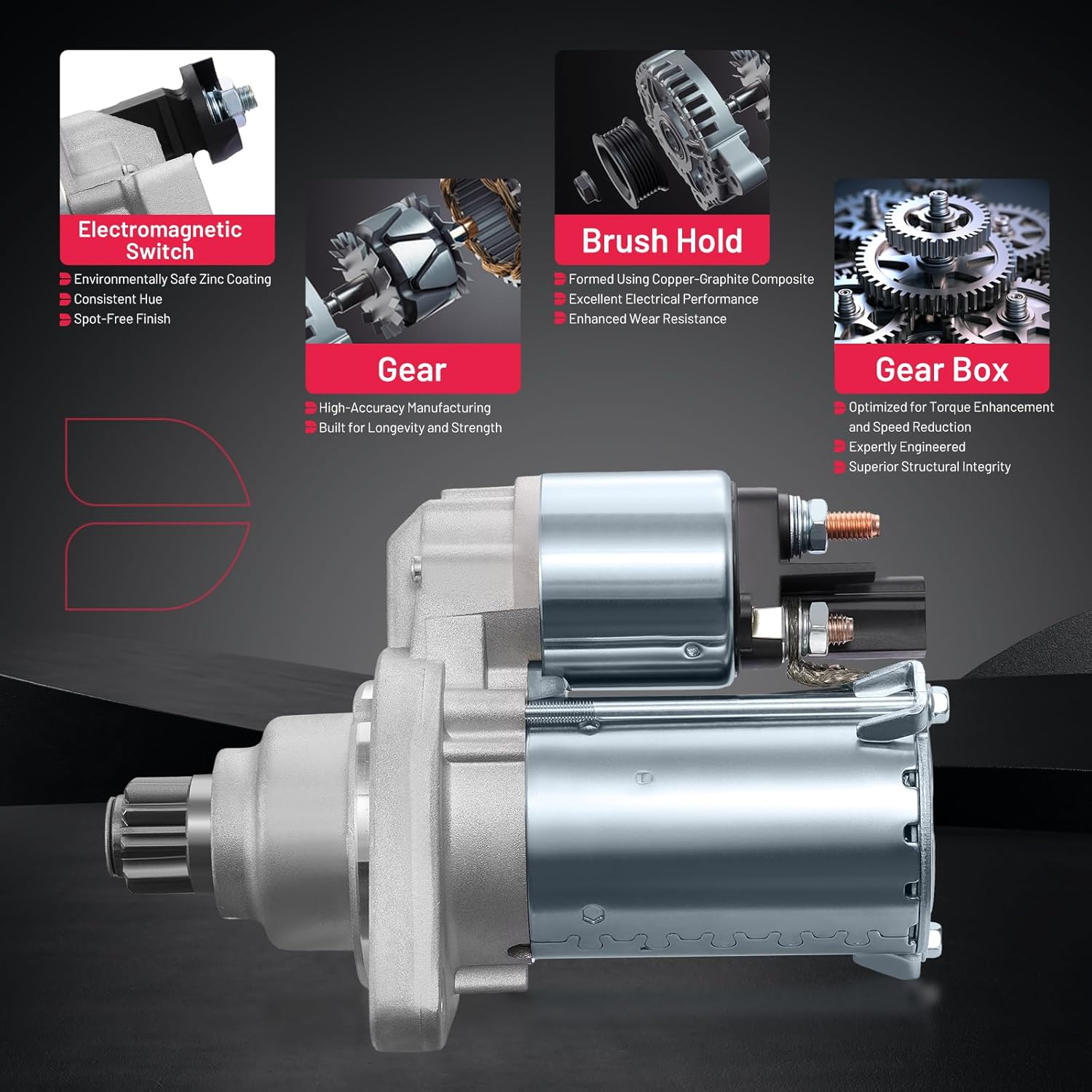 BDFHYK Starter Motor Compatible with Audi A3 2004-2006 2009-2013, Compatible with Volkswagen Beetle 2012-2013, Jetta 2006-2015, L4 2.0L 3.2L, Replace# 17970, 17970N
