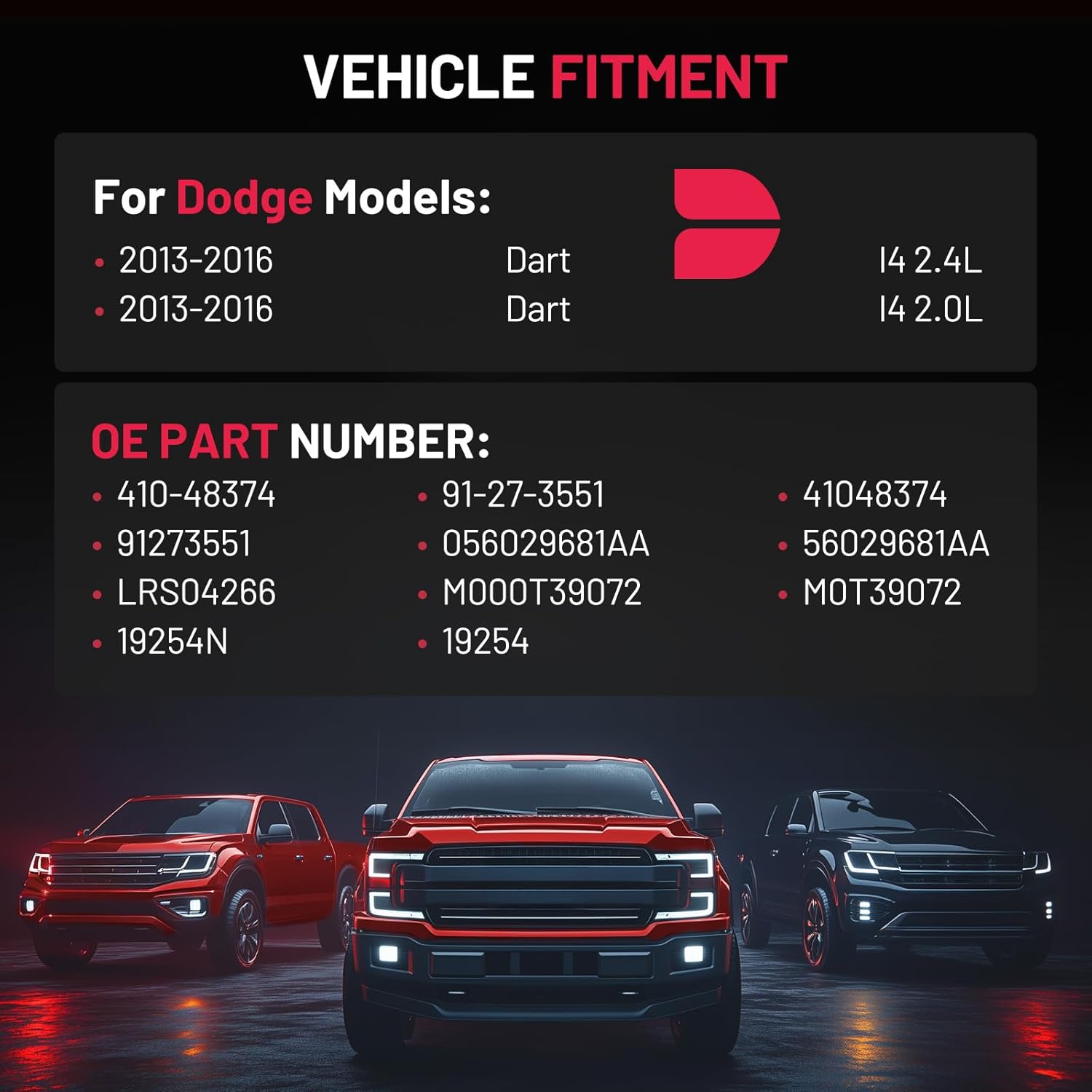 【Vehicle Fitment】 Compatible with Dodge Dart 2013 2014 2015 2016 L4 2.4L 2.0L