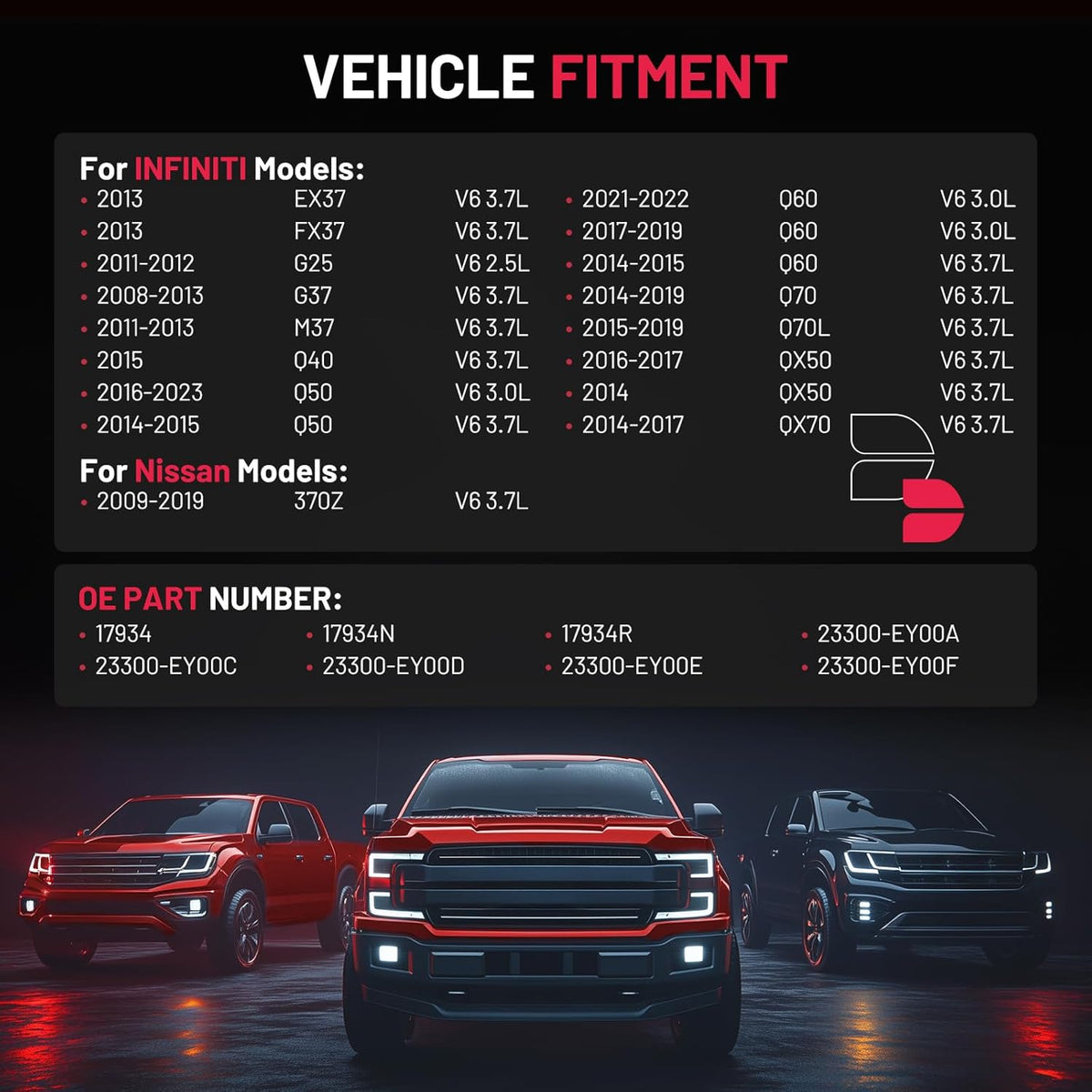 【Vehicle Fitment】 Compatible with INFINITI G25 2011-2012, FX37 2013, G37 2008-2013, M37 2011-2013, Q50 2014-2019, Q40 2015, Q60 14-15 17-19 21-22, QX50 2016-2017, QX70 14-17, V6 3.0L 3.7L. Compatible with Nissan 370Z 2009-2019 V6 3.7L