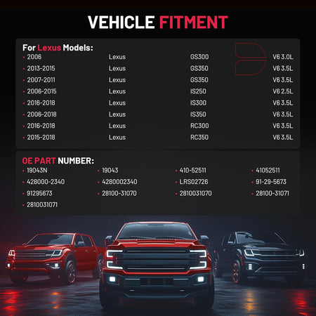 【Vehicle Fitment】 Compatible with Lexus GS300 2006, GS350 2007-2011 2013-2015, IS250 2006-2015, RC350 2015-2018, IS300 2016-2018, IS350 2006-2018, RC300 2016-2018, V6 3.0L 3.5L