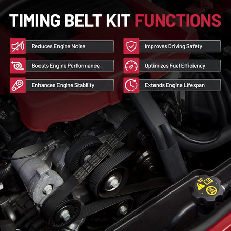 [Feature]: This Complete Timing Belt Kit synchronizes camshaft and crankshaft with precision, delivering smooth valve timing, quieter operation, and better fuel efficiency.