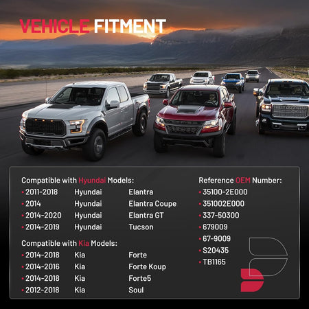 【Compatibility】Compatible with 2011-2018 Hyundai Elantra, 2014 Hyundai Elantra Coupe, 2014-2020 Hyundai Elantra GT, 2014-2019 Hyundai Tucson; 2014-2018 Kia Forte, 2014-2016 Kia Forte Koup, 2014-2018 Kia Forte5, 2012-2018 Kia Soul.