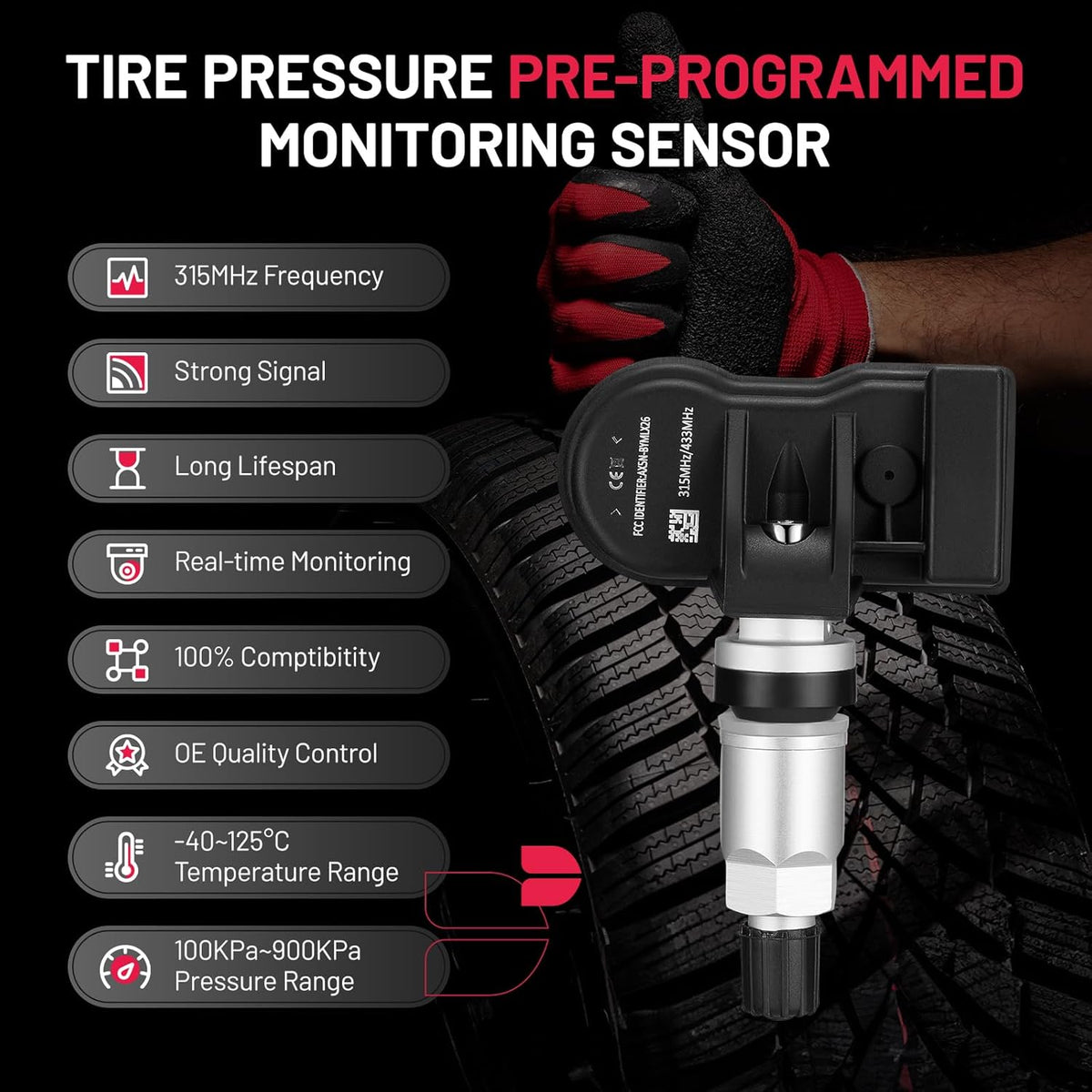 Easy to Install: No sensor programming needed! The tire pressure monitor system (TPMS) comes pre-programmed for your vehicle's make, model, and year. PLEASE DON'T LET THE REPAIR SHOP REPROGRAM, Just need activate them with scan tool, simply follow the OE relearn procedure after installation.If you encounter one or two tire pressures that cannot be used, please feel free to C-O-N-T-A-C-T us