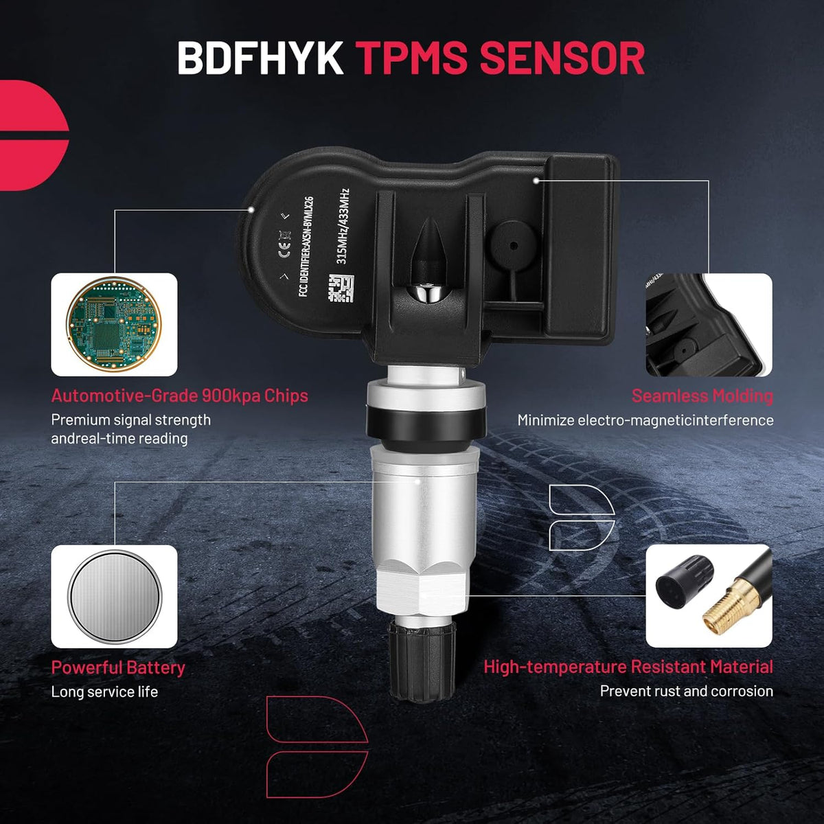 Customer Service: 1-year Assurance. All BDFHYK Tire Pressure Monitoring System (TPMS) sensors undergo rigorous testing during manufacturing to ensure top quality. If you have any questions, please do not hesitate to contact us. Your satisfaction is our top priority