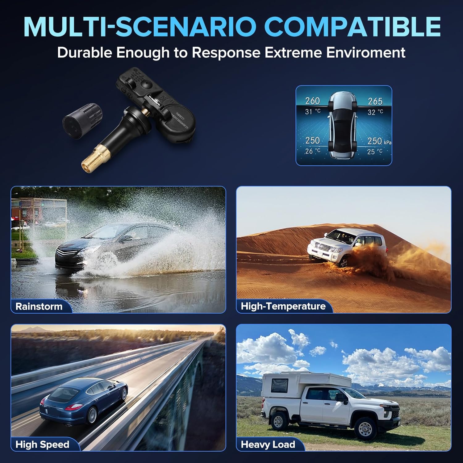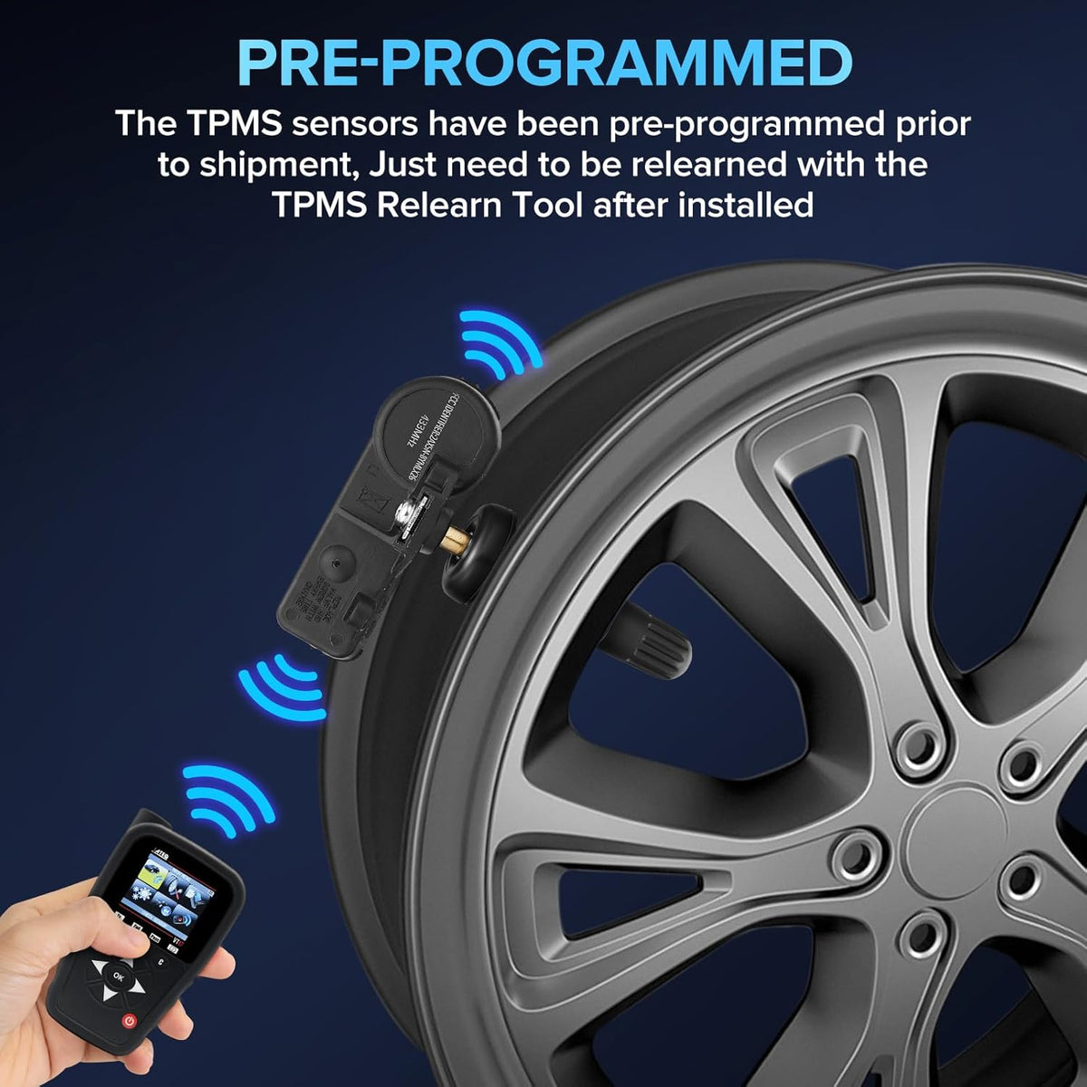 【 】- NO SENSOR PROGRAMMING REQUIRED! The tire pressure monitor system (TPMS) come pre-programmed specifically for your make/model/year of vehicle,just need activate them with scan tool