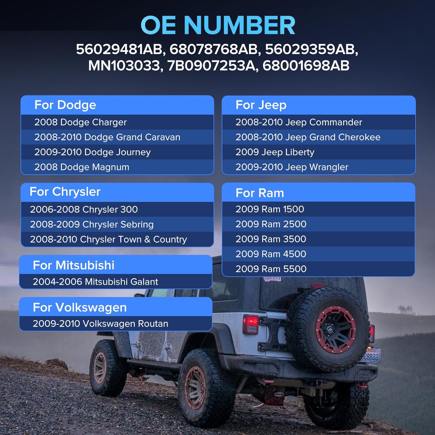 【】- The tire pressure sensor tpm sensors is Brand new Compatible with 2006-2008 Chrysler 300, 2008-2009 Chrysler Sebring, 2008-2010 Chrysler Town & Country, 2008 Dodge Charger, 2008-2010 Dodge Grand Caravan, 2009-2010 Dodge Journey, 2008 Dodge Magnum, 2008-2010 Jeep Commander, 2008-2010 Jeep Grand Cherokee, 2009 Jeep Liberty, 2009-2010 Jeep Wrangler, 2004-2006 Mitsubishi Galant, 2009-2010 Volkswagen Routan, 2009 Ram 1500/2500/3500/4500/5500.Complete lists are below