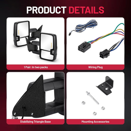 Important Compatibility Note - These mirrors require specific vehicle options to function correctly. Please verify compatibility with your vehicle and ensure this product meets your needs before ordering. They may not work as intended if your vehicle lacks the required options.