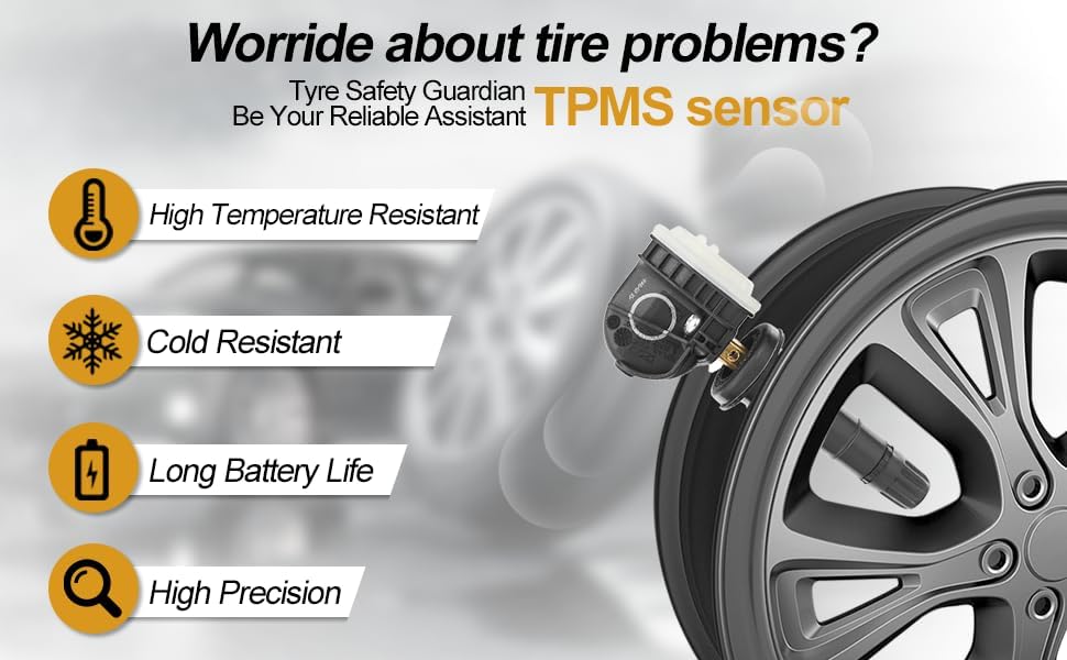 【High Performance & Reliability】: This Programmed TPMS Sensor is built with premium-grade components to ensure exceptional reliability, durability, and safety. Equipped with an automotive-grade battery providing a service life of over 3 years under normal use. Advanced chipset delivers strong signal stability and accurate real-time pressure readings. Engineered to withstand extreme temperatures from -49°F to 261°F, offering consistent performance even in harsh environments