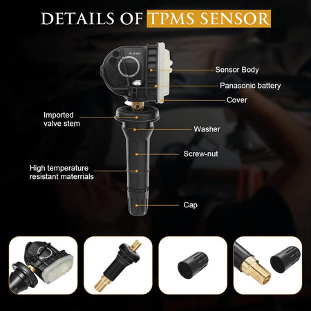 【Ready to Use & Easy Installation】: Our tire pressure sensor comes pre-programmed and ready for quick pairing with compatible vehicles. After installation, simply follow the standard TPMS relearn procedure as outlined in the included user guide. No additional programming is needed—just install, relearn, and go