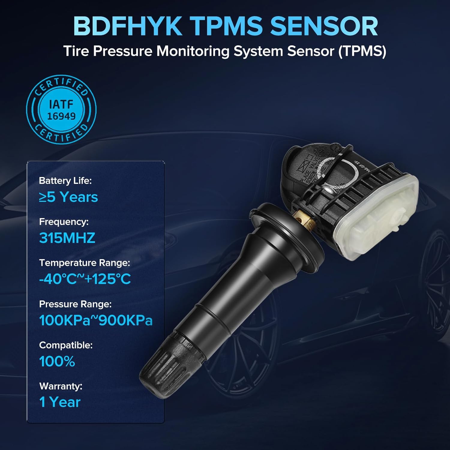 [Customer Service] : 1-year Assurance. All BDFHYK Tire Pressure Monitoring System (TPMS) sensors undergo rigorous testing during manufacturing to ensure top quality. If you have any questions, please do not hesitate to contact us. Your satisfaction is our top priority
