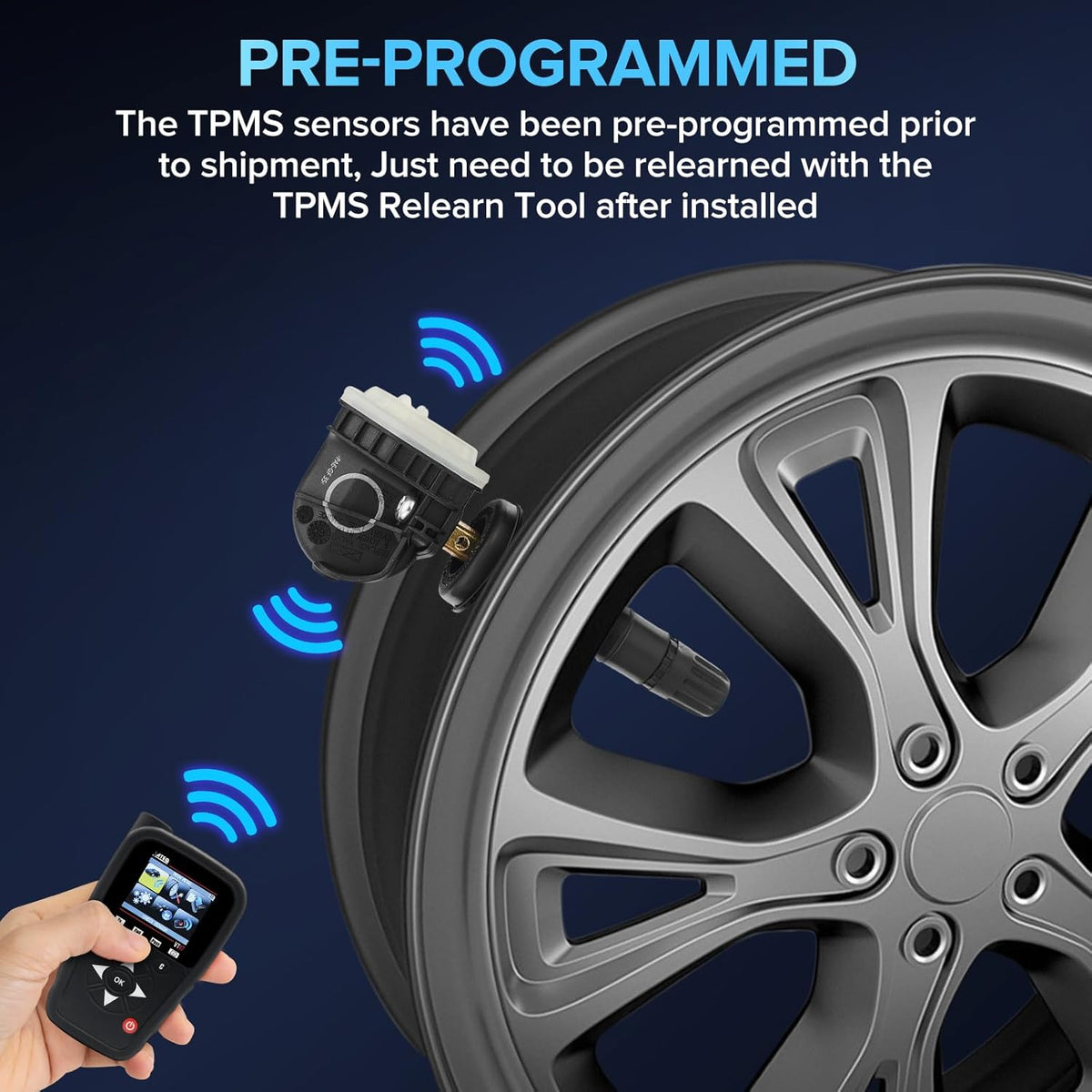【EASY TO USE】Our preprogrammed tire sensor comes ready to be paired to compatible vehicle, just need to pair and relearn after installation. please refer to standard relearn procedure specified on the user guide included.
