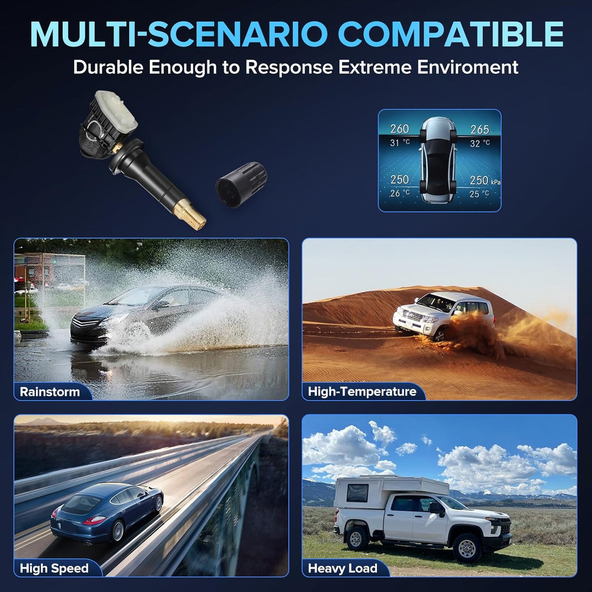 【PERFECT FUNCTION】With high level of tire monitor accuracy and sensitivity, the tire pressure monitoring sensor perfectly matched with the front and rear wheels, left and right sides means you will get a fairly reliable sensor to monitor tire pressure