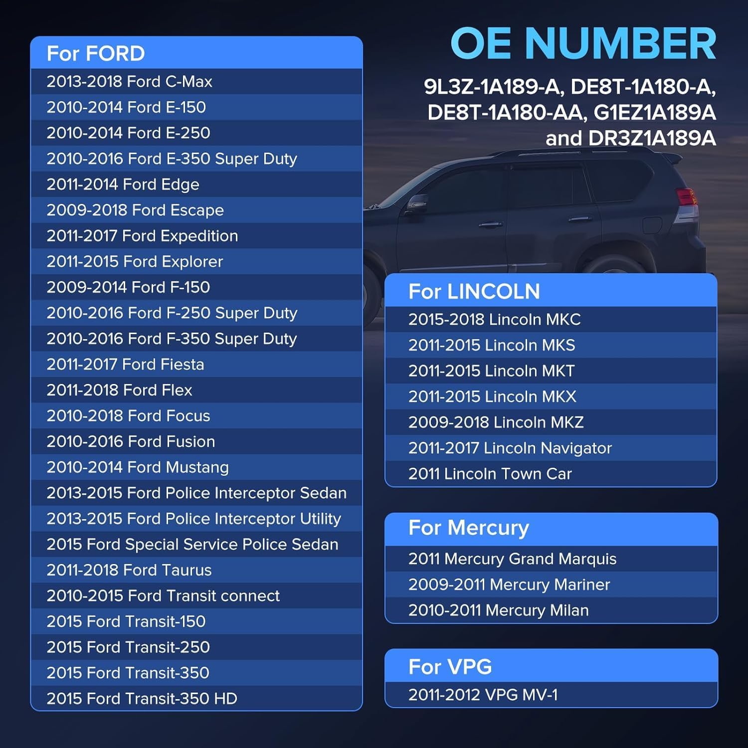 【Fitment】Compatible with F150 Mustang Ranger Fiesta Ecosport Edge Explorer Transit Connect Police Interceptor Utility, Lincoln Navigator MKX Continental vehicles. Replace for F2GT1A180AB F2GT1A150AB F2GZ1A189A GL3T1A180GB HC3Z1A189A FR3Z1A189A JX7T1A180A.