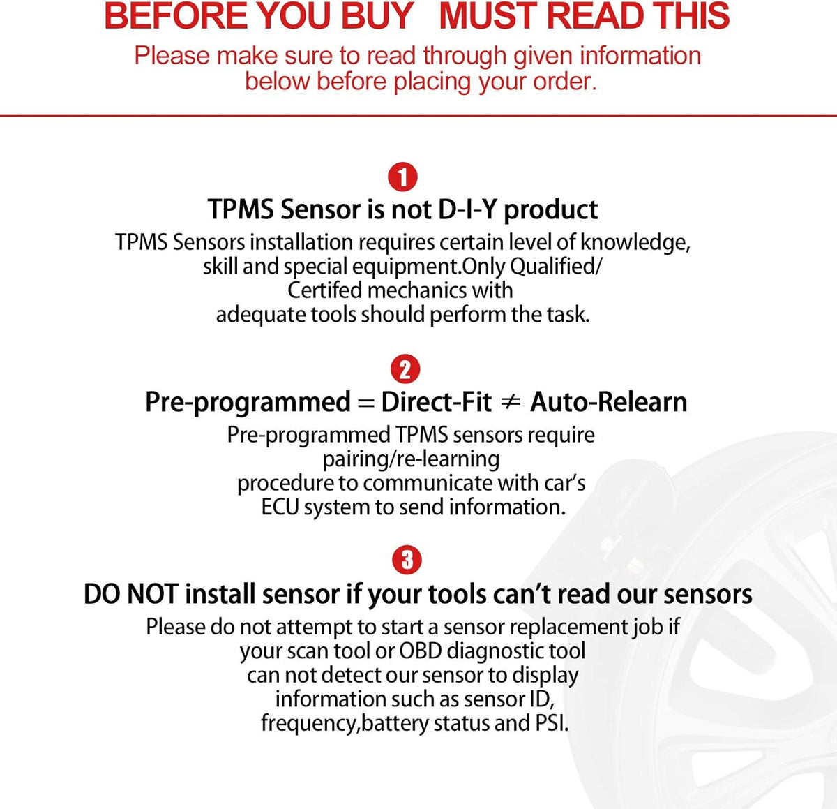 【EASY TO USE】Our preprogrammed tire sensor comes ready to be paired to compatible vehicle, just need to pair and relearn after installation. please refer to standard relearn procedure specified on the user guide included.