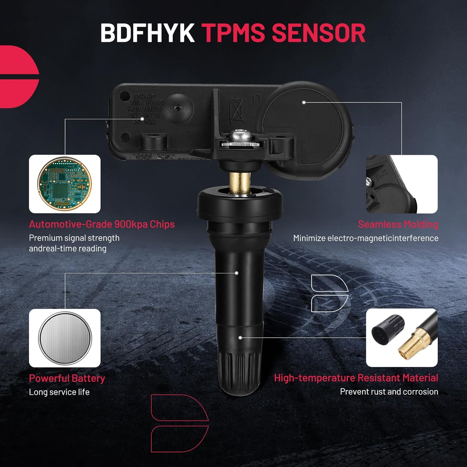 Customer Service: 1-year Assurance. All BDFHYK Tire Pressure Monitoring System (TPMS) sensors undergo rigorous testing during manufacturing to ensure top quality. If you have any questions, please do not hesitate to contact us. Your satisfaction is our top priority