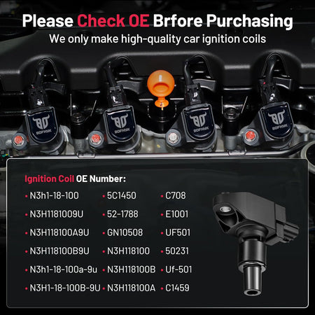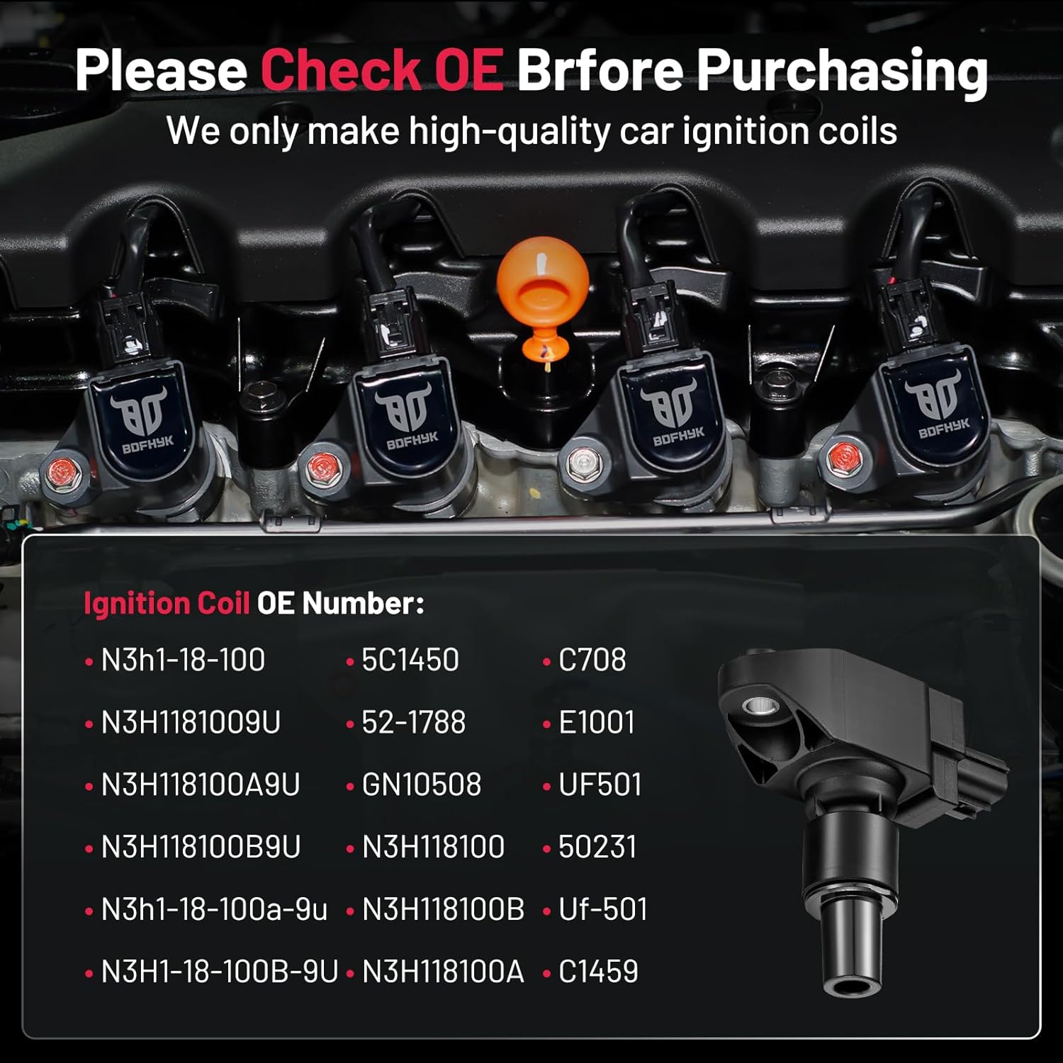 【Relive Performance】:Replacing the ignition coil package tackles several engine issues, including Reduce the common issues of ignition coil misfire, long crank time, poor fuel economy, inadequate power and hesitation.
