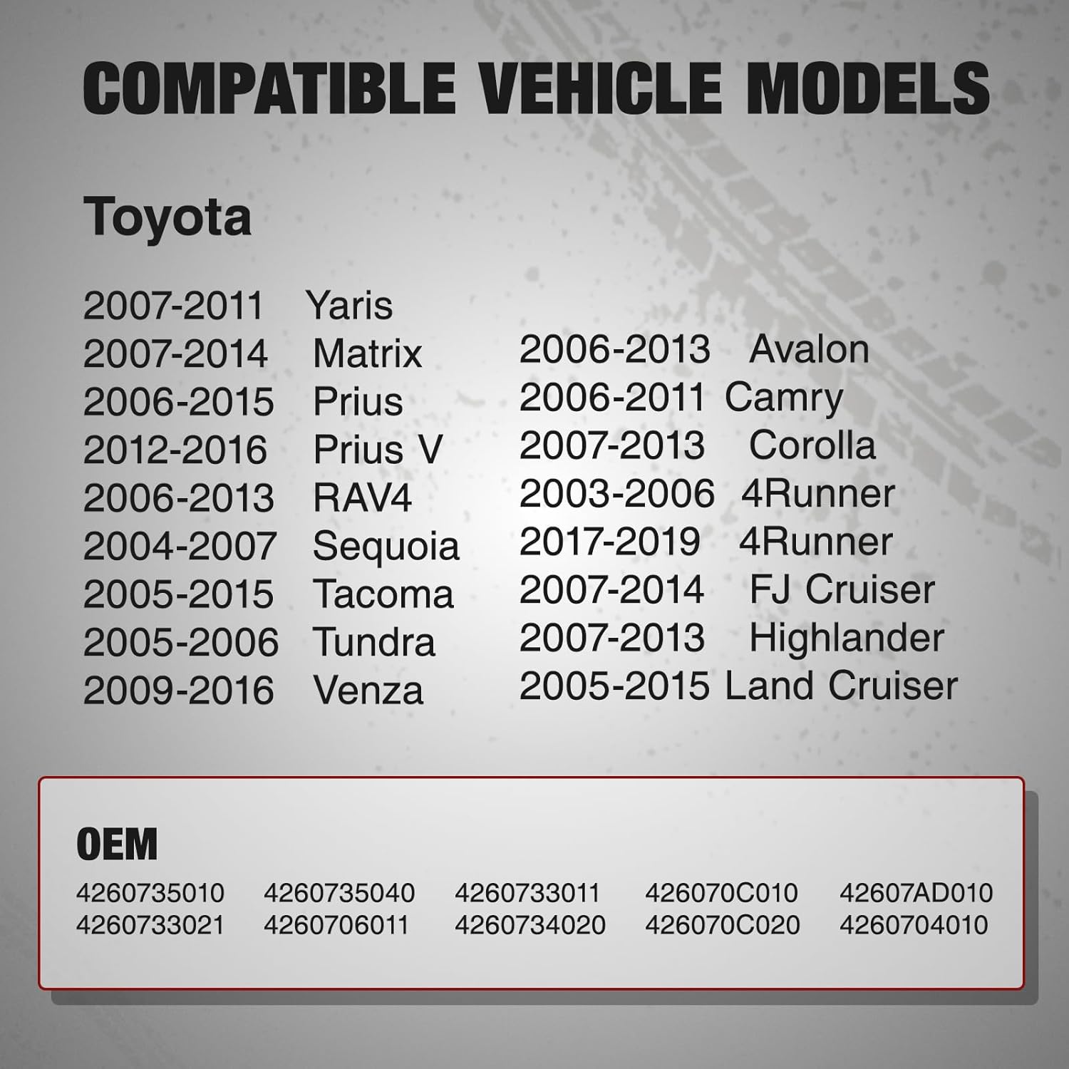 [?]-The TPMS is 100% Brand new Compatible with Toyota: 2003 - 2006 4Runner, 2017 - 2019 4Runner, 2006 - 2013 Avalon, 2006 - 2011 Camry, 2007 - 2013 Corolla, 2007 - 2014 FJ Cruiser, 2007 - 2013 Highlander, 2005 - 2015 Land Cruiser, 2007 - 2014 Matrix, 2006 - 2015 Prius, 2012 - 2016 Prius V, 2006 - 2013 RAV4, 2004 - 2007 Sequoia, 2005 - 2015 Tacoma, 2005 - 2006 Tundra, 2009 - 2016 Venza, 2007 - 2011 Yaris.