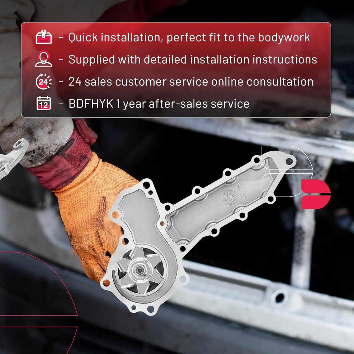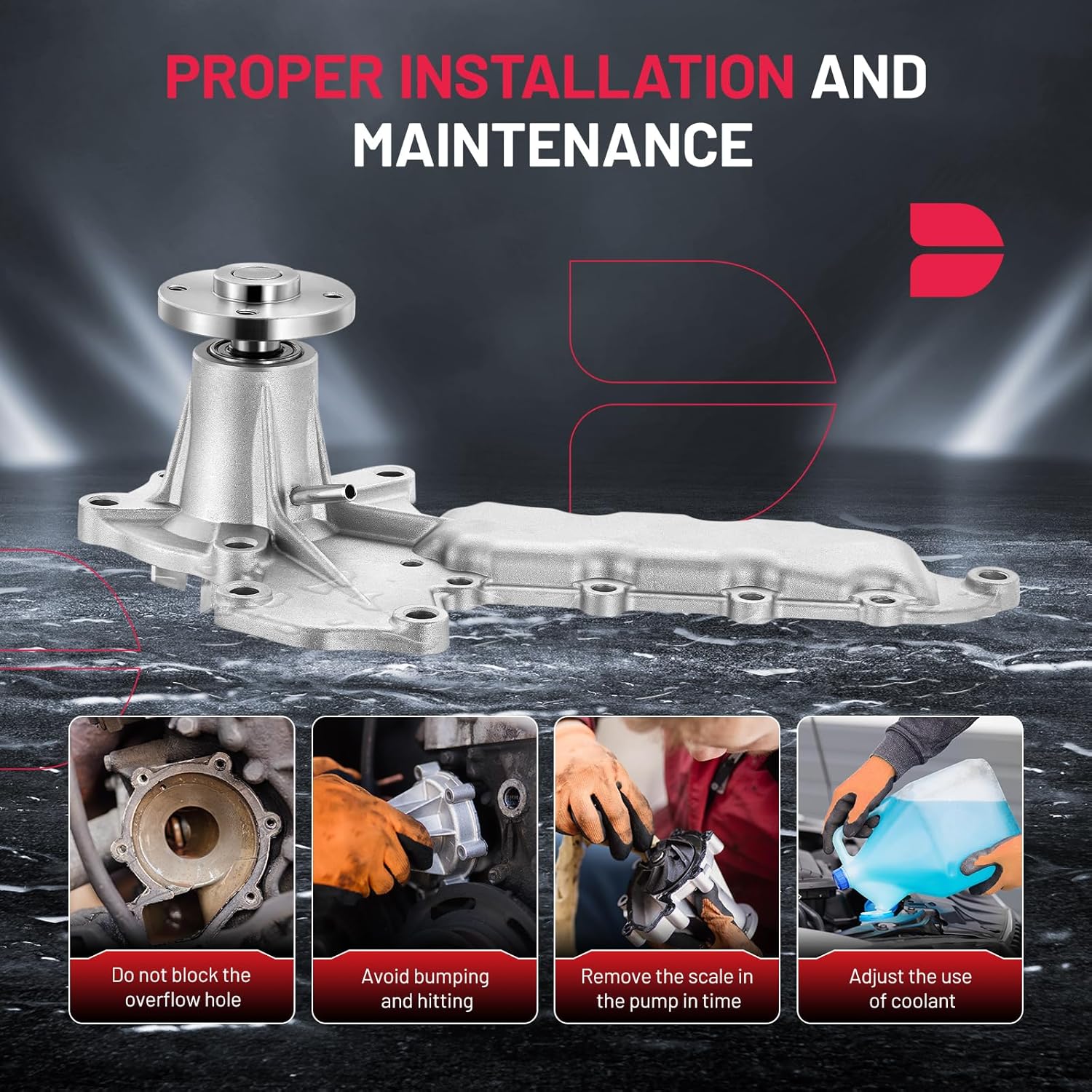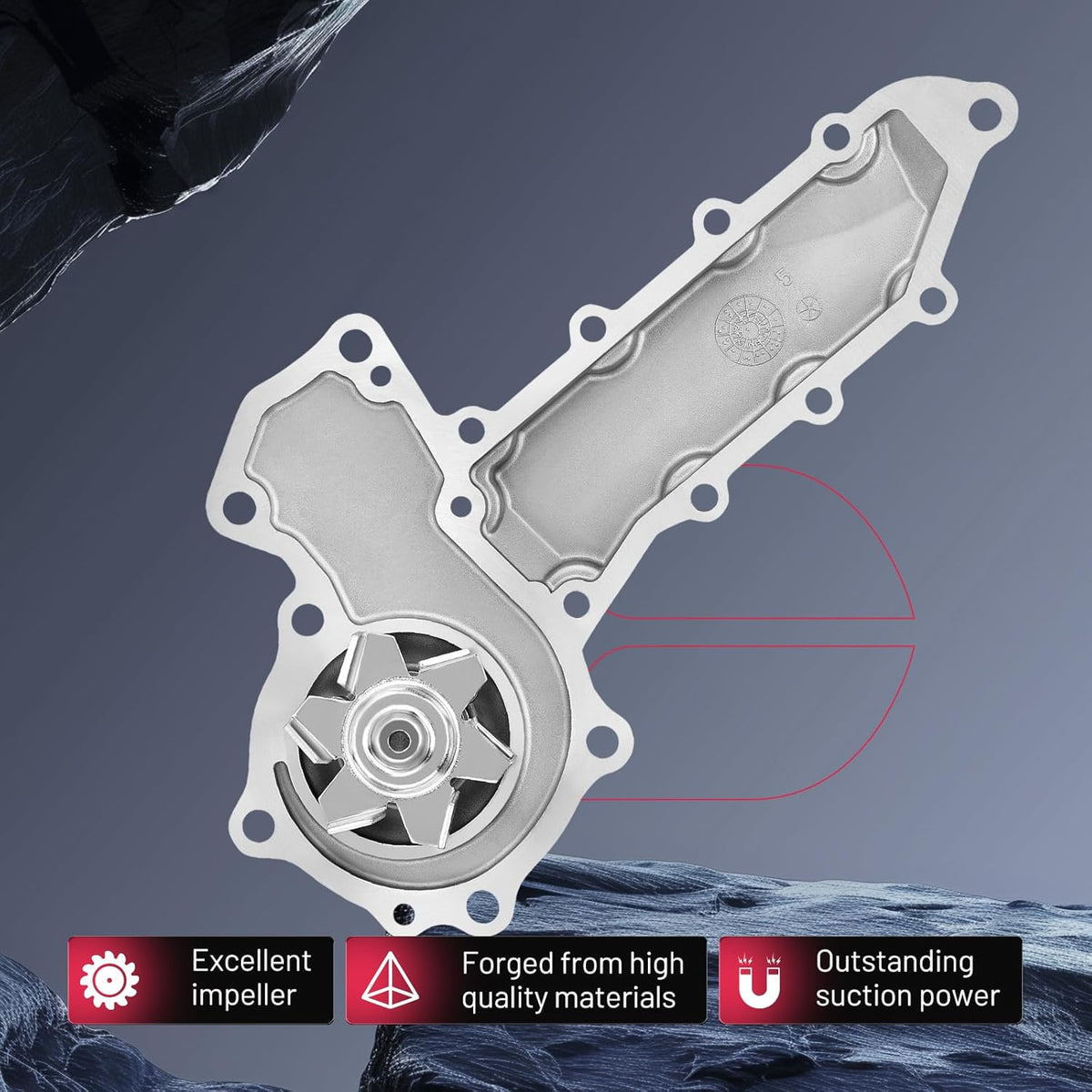 [PREMIUM QUALITY] This engine water pump is manufactured in ISO/TS16949 2009 certified facilities, built to meet or exceed OE specifications, Undergone a rigorous testing before shipping to ensure 100% reliability and leak-free performance.
