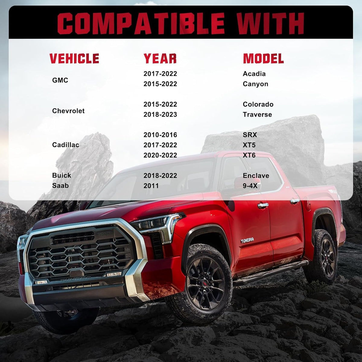 【Basic Info:】Wheel Spacers Compatible with Buick 2018-2022 Enclave; Compatible with Cadillac 2010-2016 SRX, 2017-2022 XT5, 2020-2022 XT6; Compatible with Chevy 2015-2022 Colorado, 2018-2023 Traverse; Compatible with GMC 2017-2022 Acadia, 2015-2022 Canyon; Compatible with Saab 2011 9-4X.Please check detail fitting info from pics or detail page. 12 months warranty and lifetime after-sales service are furnished after bought our products. Please choose a suitable one with confidence.