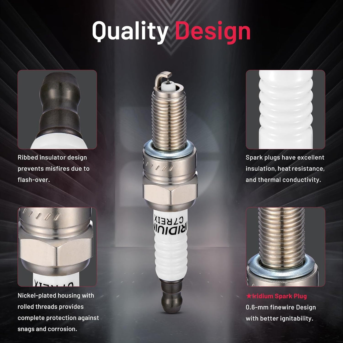 【Relive Performance】:OE standard performance and durability TS16949 certified manufacturer. All center electrodes are made from extremely fine iridium electrodes for good ignition performance. Insulators are made from isostatic ceramics for high density, strength, and good insulation.