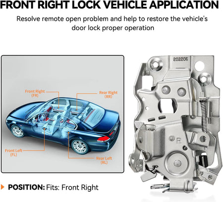 [Positions] - Replace Passenger Side and Front Right Door Lock Actuator: If the passenger side lifter of your vehicle cannot be locked or is not properly unlocked,the problem may be in the lock actuator, This latch is manufactured to the OE specification to provide factory-fresh appearance and direct-fit, that enables proper door locking function. OE connector helps ensure a solid, positive connection.