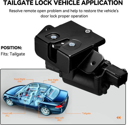 [Positions] - Replace Trunk Latch Tailgate Lock Actuator: If the lifter of your vehicle cannot be locked or is not properly unlocked,the problem may be in the lock actuator, This latch is manufactured to the OE specification to provide factory-fresh appearance and direct-fit, that enables proper door locking function. OE connector helps ensure a solid, positive connection.