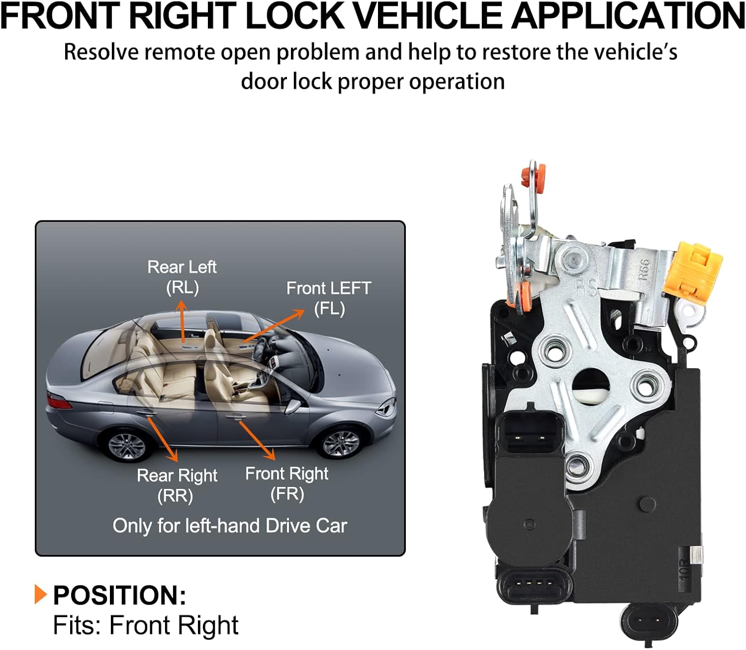 [] - Replace Front Right Passenger Side Latch Actuator. This latch is manufactured to the OE specification to provide factory-fresh appearance and direct-fit, that enables proper door locking function.