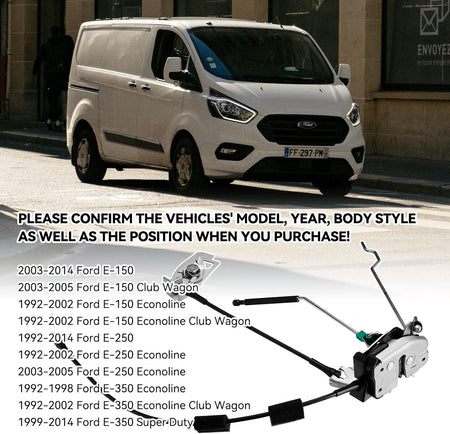 [Perfect Fit] - The lock actuator is compatible with Ford 2003-2014 E-150, 2003-2005 E-150 Club Wagon, 1992-2002 Ford E-150 Econoline, 1992-2002 E-150 Econoline Club Wagon, 1992-2014 E-250, 1992-2002 E-250 Econoline, 2003-2005 E-250 Econoline, 1992-1998 E-350 Econoline, 1992-2002 E-350 Econoline Club Wagon, 1999-2014 E-350 Super Duty.(See below for the full vehicle list)