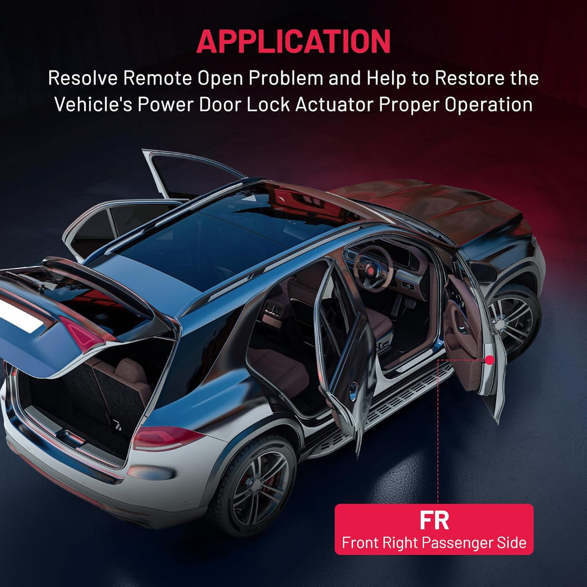 [Positions] - REPLACE FR Front Right Passenger Side Lock Actuator. This latch is manufactured to the OE specification to provide factory-fresh appearance and direct-fit, that enables proper door locking function. OE connector helps ensure a solid, positive connection.