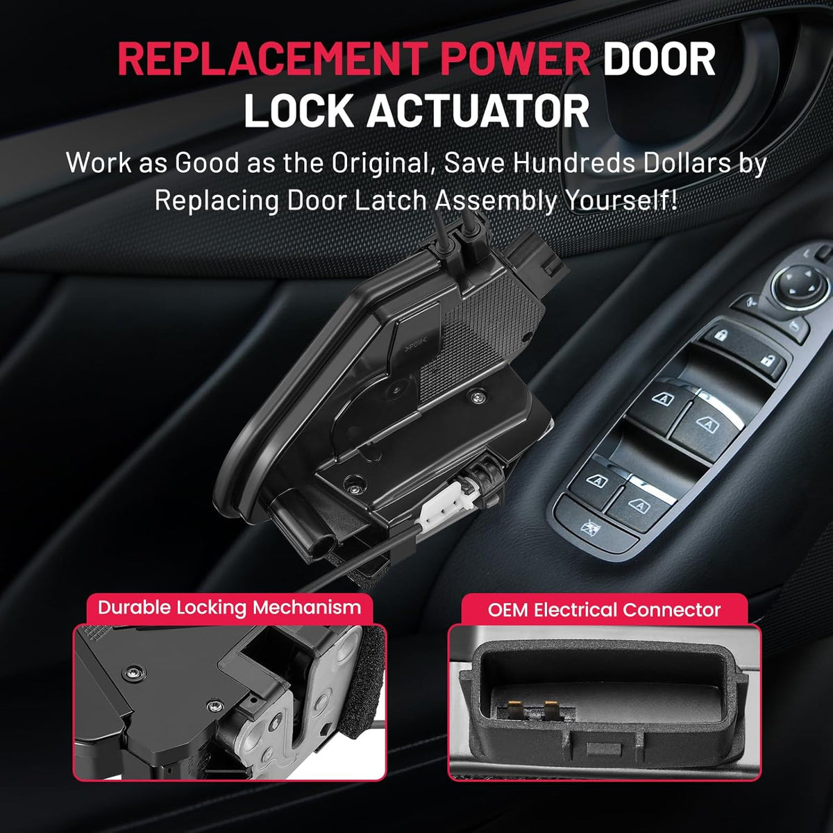【Positions】REPLACE FR Front Right Passenger Side Lock Actuator. This latch is manufactured to the OE specification to provide factory-fresh appearance and direct-fit, that enables proper door locking function. OE connector helps ensure a solid, positive connection.